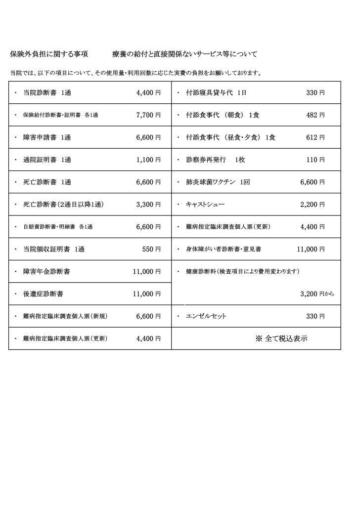 療養の給付と直接関係ないサービス等の費用について